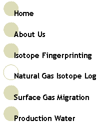 Example of Natural Gas Isotope Log showing subsurface depth variations in carbon isotopic composition of C1 through C4 n-alkanes (methane, ethane, propane, and n-butane). |